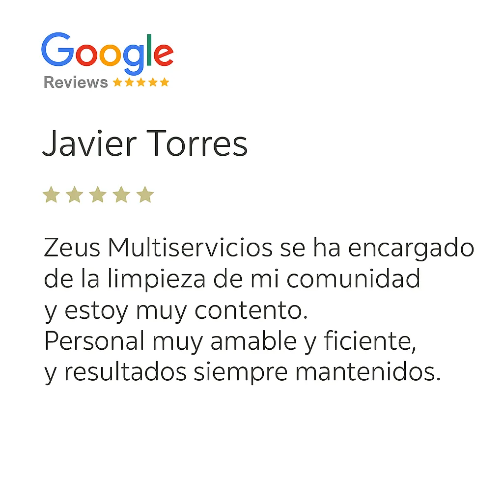 Desde la primera intervención, Grupo Zeus nos transmitió una gran confianza por su organización, puntualidad y método de trabajo. Realizaron una limpieza profunda con maquinaria profesional y dejaron cada espacio en condiciones impecables. El resultado superó nuestras expectativas: orden, higiene y sensación de renovación total. En Valencia es difícil encontrar una empresa de limpieza tan eficiente, seria y comprometida con la calidad. Sin duda, un servicio altamente recomendable por su profesionalismo y resultados.